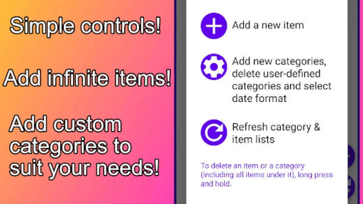 Have many items and can’t remember all of them just by name? You can add pictures for each item in this app. This will help you easily remember just by looking at the picture of any item!