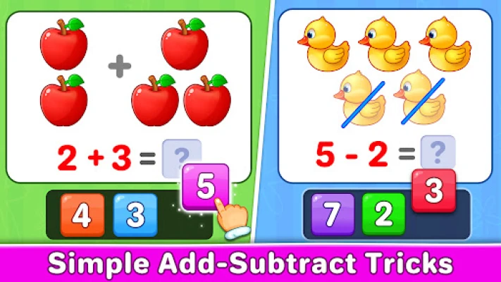 Kids will love learning addition and subtraction in this mode, which features a variety of fun and simple kids games.