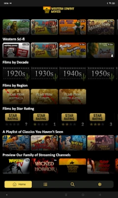 Experience the best classic and modern western, TV shows, and serials from the 1940s, 1950s, and 1960s. Our vast library was curated by dedicated western fans from the vaults of film history. Experience John Wayne, Gary Cooper, Yul Brynner, Eli Wallach, Katy Jurado, Burt Lancaster, and hundreds of classic actors from the classic era of western films. Watch the best classic western content like you’ve never seen them before, only the Western Cowboy Movie Channel!